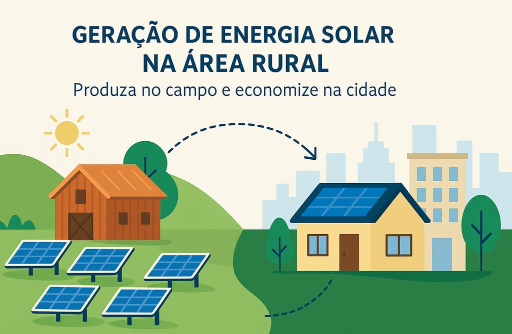 Você sabia que é possível gerar energia solar em um imóvel rural — mesmo de pequeno porte — e usar essa energia para abater a conta de luz da sua casa ou comércio na cidade?